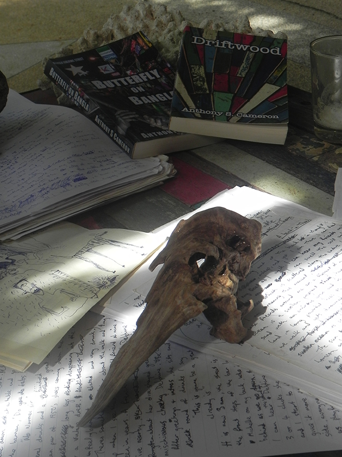 Anthony S. Cameron is an Australian ex-pat living in Phuket, Thailand, and the author of two novels, Driftwood (2014) and Butterfly on Bangla (2015). Born in Melbourne, he escaped in his early twenties to central Victoria, where he designed and built a sustainable house and raised two sustainable children. His books are available on Amazon here. You can find his sculptural furniture on Facebook here.