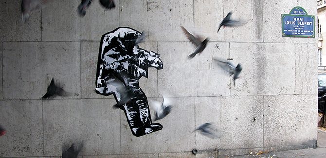 I had seen a striking stencil portrait of Mussolini in Italy when travelling with my parents as a child, and when looking for my personal means of expression I remembered this old technique. I found that the stencil better suited the architecture of Paris than the big graffiti pieces I had seen in America.