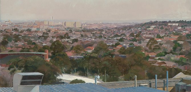 My own work has a very simple premise. It comes out of my interest in looking at things in the world around me and making pictures. My paintings come not from an analysis, but from an encounter. The work is not a proposition but a set of objects. On the other hand, you will encounter recurring themes. I am fascinated by the juxtaposition of urban and natural forms and the ongoing attempts to reconcile our lives with our places. I feel very passionately about the particularities of the volumes of space that are uniquely Australian, and I am very grateful for the vast resource of paintings made across history upon which we can draw, and without which my own work would not exist.