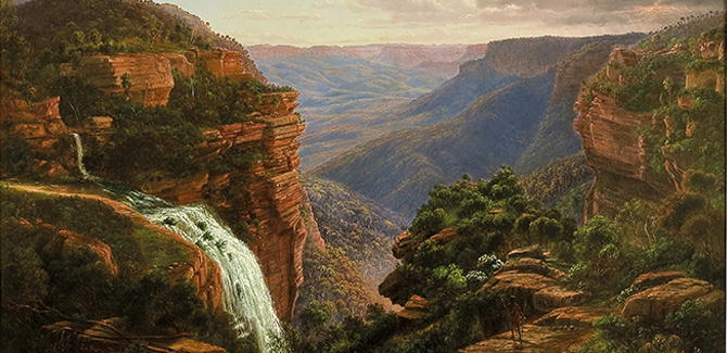 Eugene von Guérard, ‘The Weatherboard Falls’ 1863, oil on canvas. Collection: Geelong Gallery. Gift of Alfred Felton, 1900. ‘1915 revisited—a collection in residence’, Geelong Gallery, Little Malop Street, Geelong (VIC), until 16 August 2015